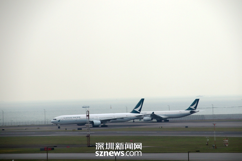 打开右手边车窗,就可以看到香港机场的停机坪