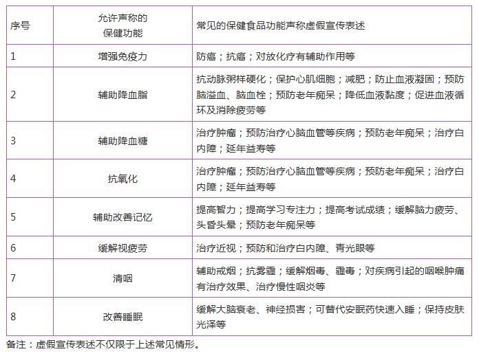 常见的保健食品功能声称虚假宣传表述