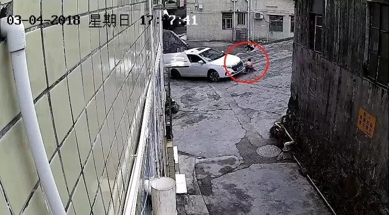 2018年3月5日19时,在蔡屋围南村的通道里,一名7岁的小男孩蹲在路口,被正在转弯的小轿车撞倒后,车轮碾压其背部,造成重伤。
