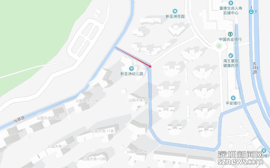 据了解,涉事路段位于龙岗区公园大地小区16号门附近,与新亚洲幼儿园、新亚洲学校相邻,与吉祥路相通。