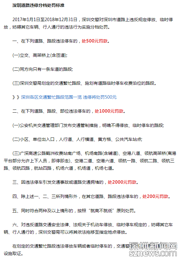 记者查阅《深圳经济特区道路交通安全违法行为处罚条例》发现,深圳交警部门可对违法停车的个人处以最高2000元的罚款。