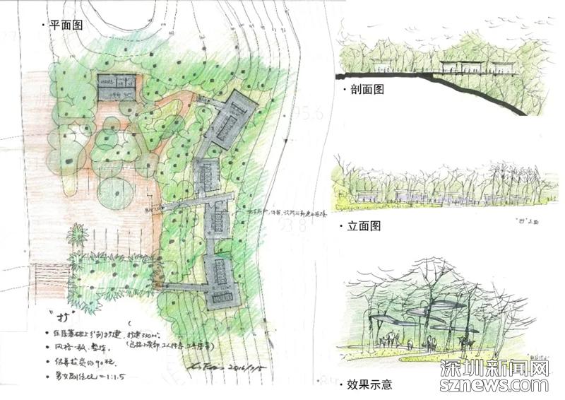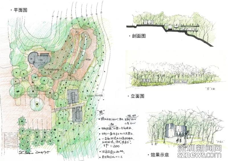 费晓华应公园管理处之邀为山顶公厕设计的改扩建方案之一,显扩方案(图纸来自雅本建筑微信公众号)