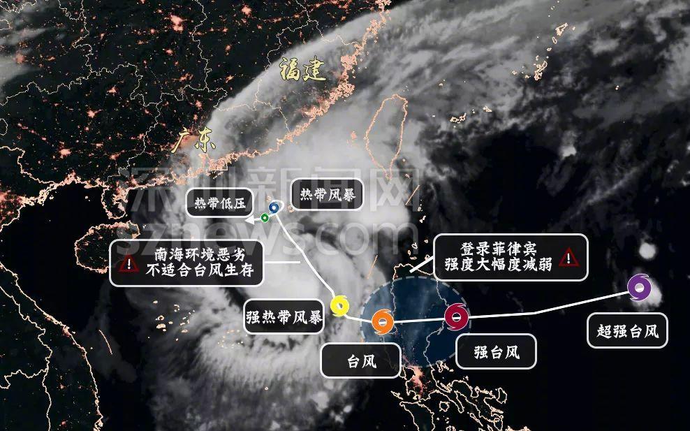 深圳市气象局发布的玉兔从超强台风到减弱为热带低压图