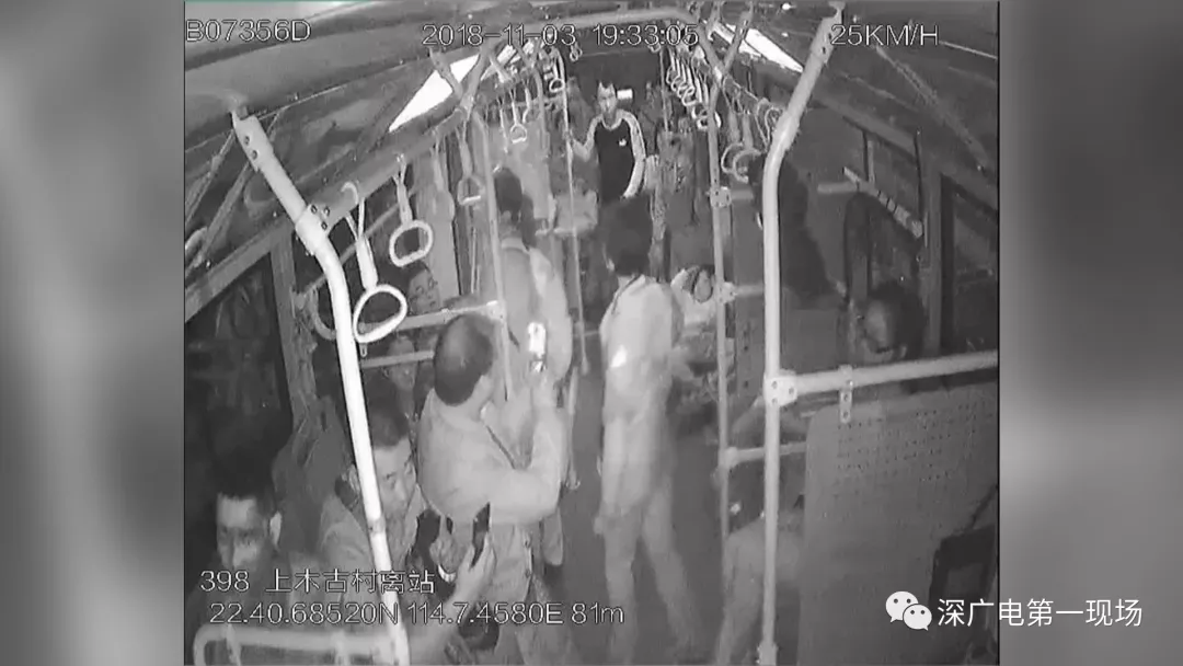 同时,周围许多其它乘客也进行劝阻,但是就在一名女乘客试图制止这名打人的男子时,这名男子竟然又提脚踢了这名女乘客的腹部。当班驾驶员立即选择报警,随后华南城警务室民警将涉事男子带走。