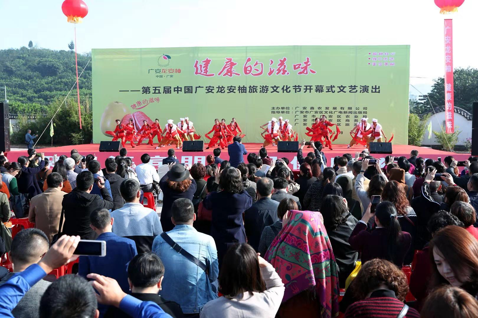金秋时节,柚果飘香。11月2日,以“广安龙安柚—健康的滋味”为主题第五届中国广安龙安柚旅游文化节在广安区龙安乡群策村开幕,3000余名群众、游客、各界嘉宾以及合作社、农业企业负责人参加了当天的开幕式。