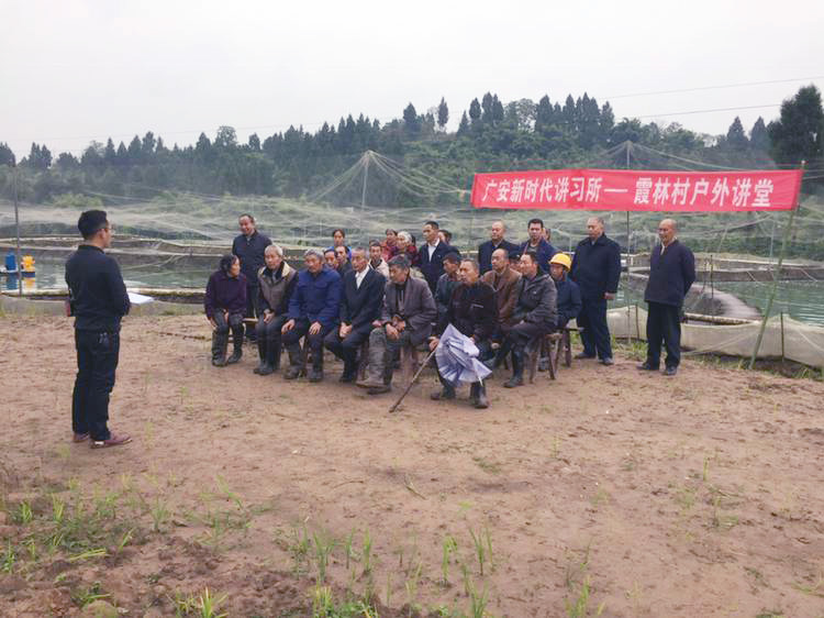 11月5日,广安区花桥镇霞林村讲习所在该村2组的一块空地上开讲。第一书记李国华鞋上沾着泥,腰上戴着“小蜜蜂”扩音器,站在两颗松树下,开始了以“如何理解和贯彻习近平总书记关于实施乡村振兴战略的重要讲话精神”为主题的讲习。