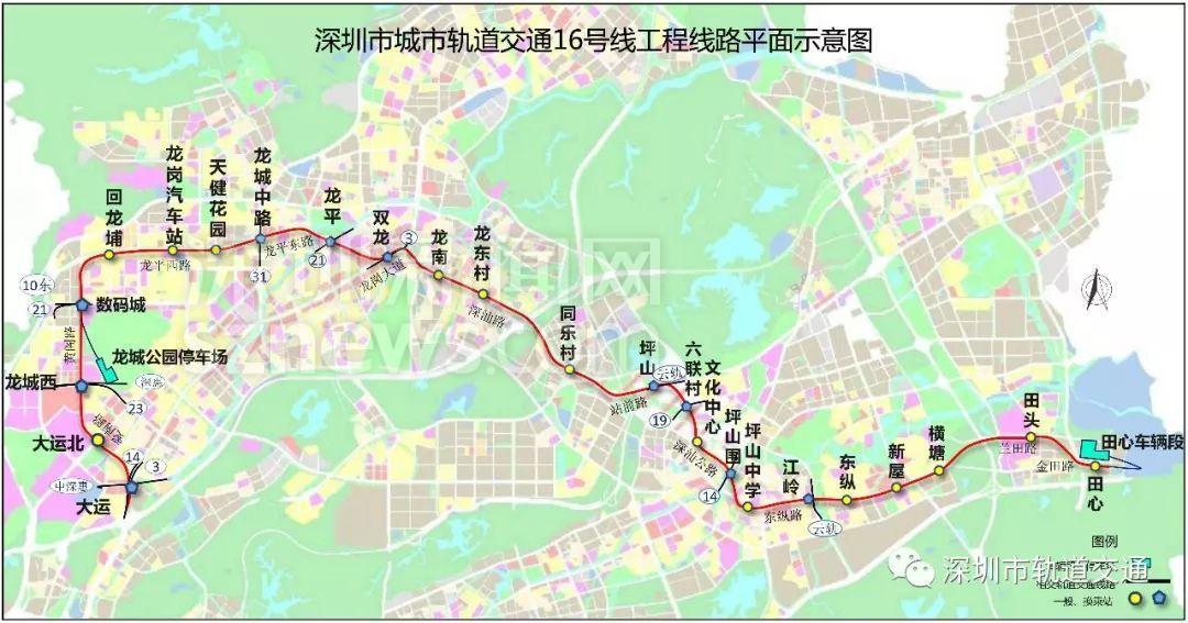 站点设置: 岗厦北、黄木岗、清水河、布吉、石芽岭、六约北(增设)、四联、坳背、大运、南约、宝龙(增设)、沙湖、坪山围、坪山广场站(增设)、朱洋坑、坑梓、沙田(站名尚未最终确定,最终线站位方案和站名以市政府批复为准)