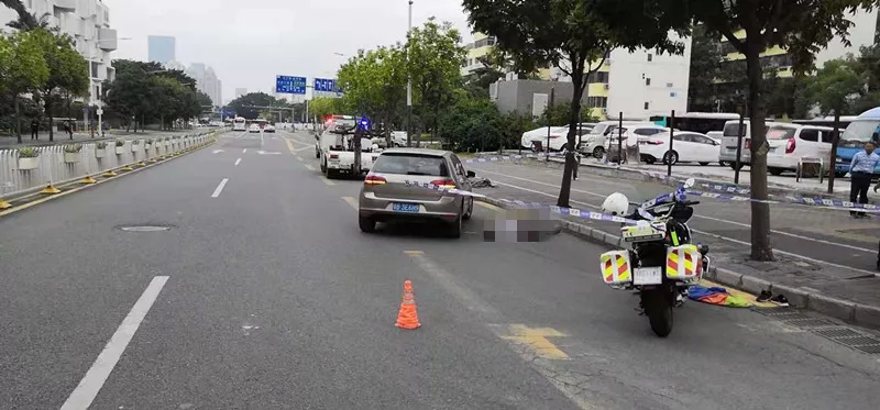 邓某军步行至红荔路西侧机动车道旁,坐在该路段西侧路牙上约40分钟后,邓某军向前倒在该路段机动车道机动车从右往左数第一条机动车道内,背朝上,头部朝红荔路南侧,双脚朝北侧,约4分钟后与张某丽驾驶的车辆发生碰碾。