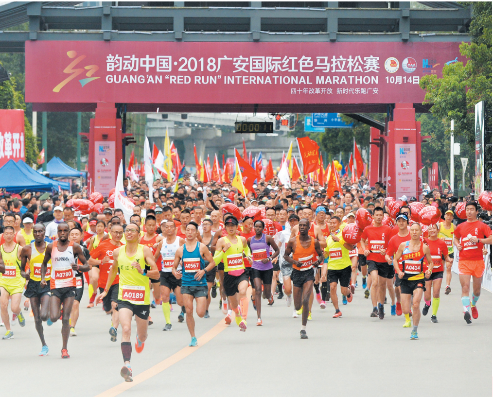 2018广安国际红色马拉松赛在邓小平故里旅游景区游客中心激情开跑