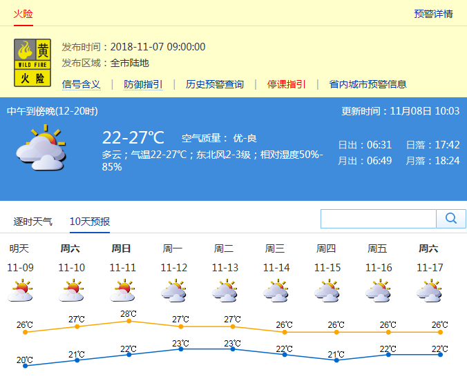 市气象局发布未来十天天气预报(数据更新于11月08日10时03分)