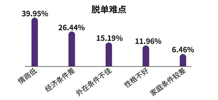 如此多的“长单族”,究其脱单难点到底有哪些?数据显示,单身者择偶面临的最主要的两大问题是情商低和经济条件差,其次为外在条件不佳,性格不好和家庭条件较差。