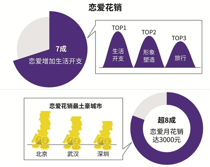 约会、旅行是恋爱必不可少的,但合理的花销是多少?对于恋爱花费,调查显示,超八成的单身单女表示每月恋爱的合理支出在3000元左右。从地域差异看,认同此观点的单身人群中北京、武汉、深圳占比最多,最土豪。