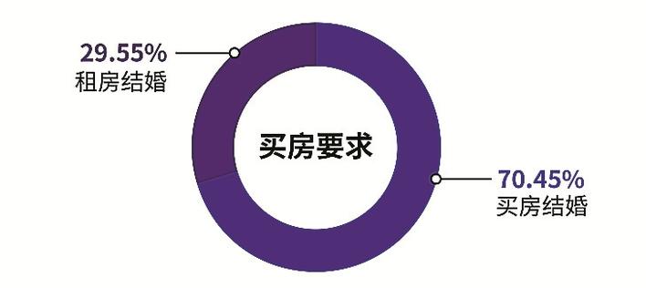 房子始终是婚恋避不开的话题。数据显示,70.45%单身人群认为结婚需要买房。其中,对于一定要买房结婚的观点,男性认同比例高于女性。而对于租房结婚,仅三成单身男女接受租房结婚。