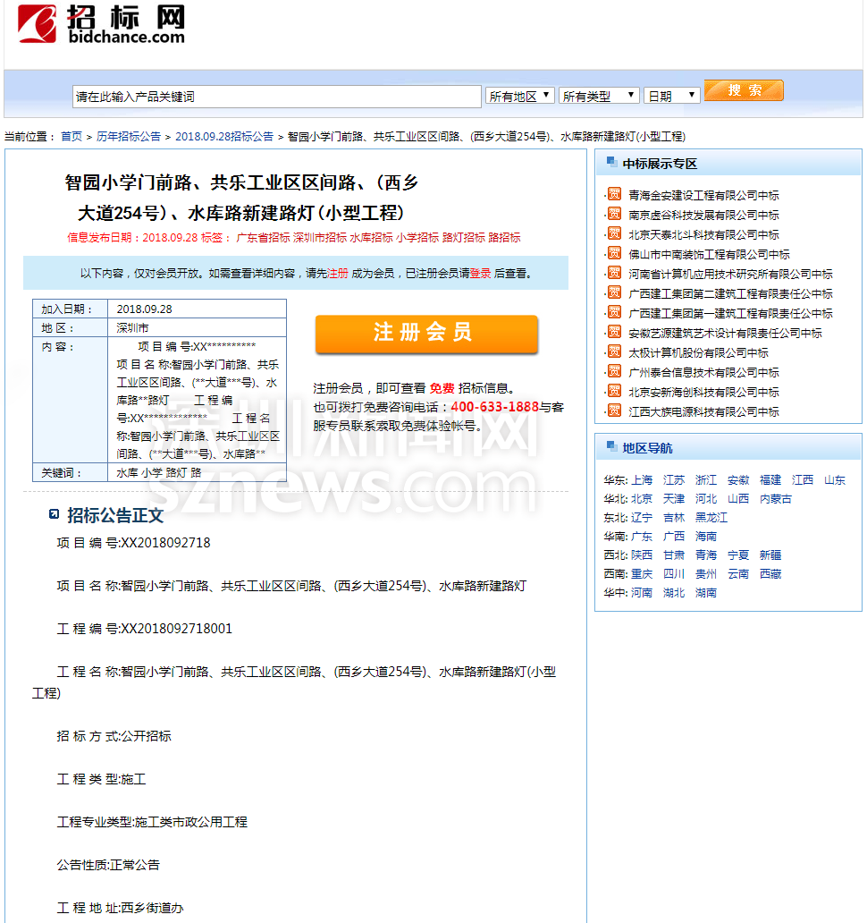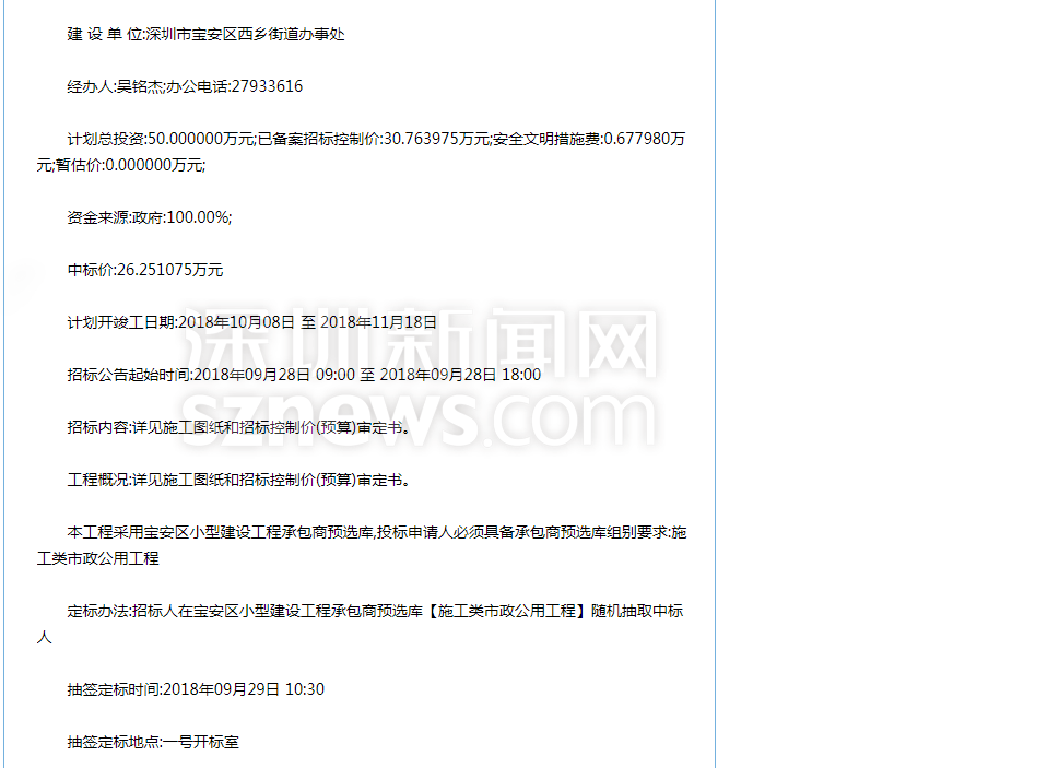 针对网友反映的情况,记者查阅相关资料发现,宝安智园小学门前的施工工程于2018年9月28日公开招标。