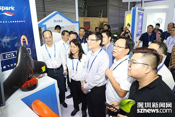 深圳新闻网讯(记者 王志明)微型个人飞行器、复古电影放映机、可以浮动的智能岛、全球通AI翻译机……14日,第二十届高交会开幕第一天,南山黑科技闪耀高交会,新奇玩意让人大饱眼福。南山区政协主席陈军、副区长肖辉、区政协副主席王树佳、区政协副主席刘根平、区政协副主席傅静宏、区法院院长詹旭伟等一行来到南山展馆,体验和感受了南山新奇特的高新科技产品。