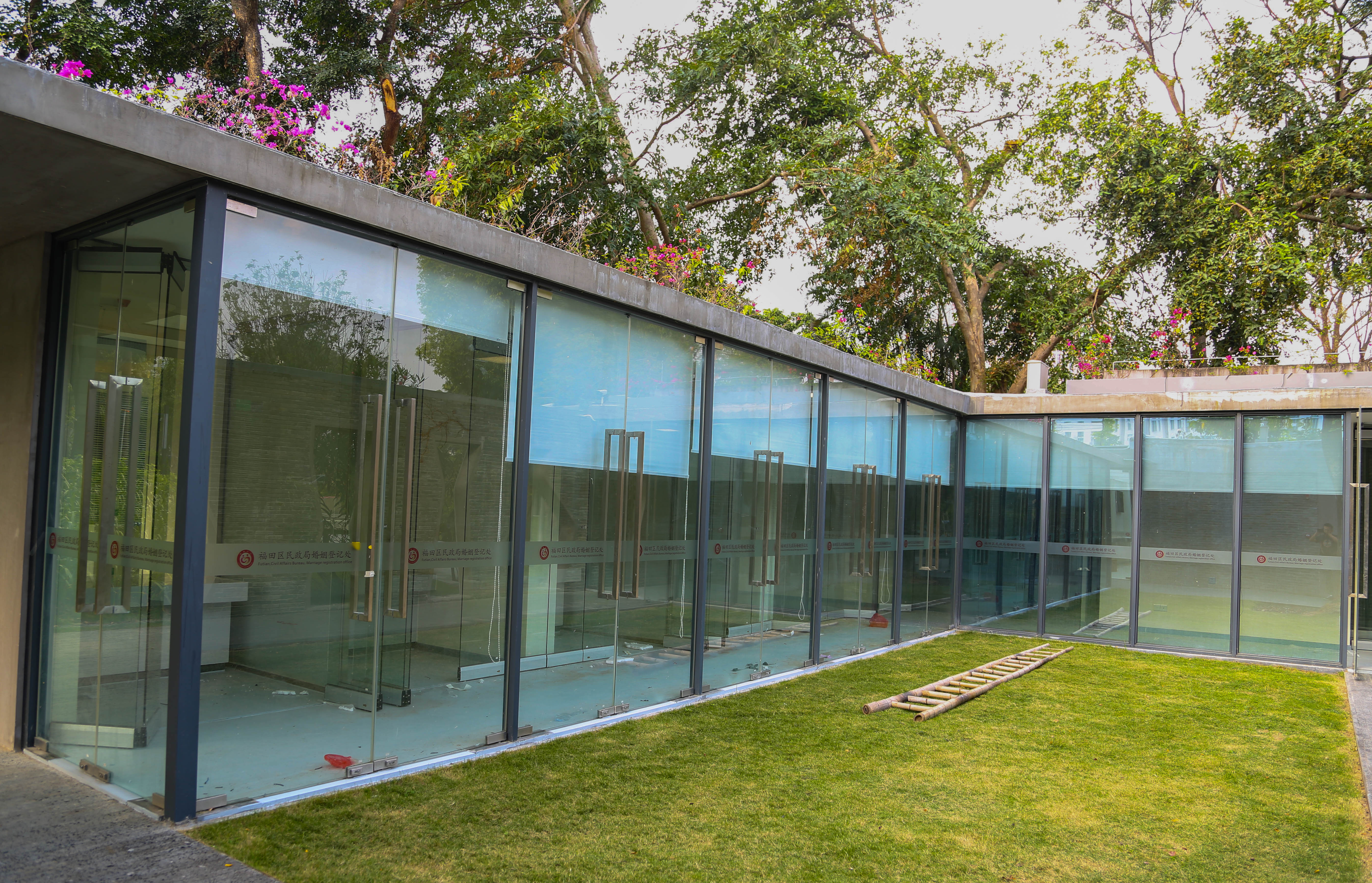 负责为婚姻登记处装修的罗先生告诉记者,在中式礼堂西侧的小池塘边有一圈平房,在正式启用之后这里将成为福田婚姻登记中心的行政办公用房和接待市民进行结婚登记的办事大厅。