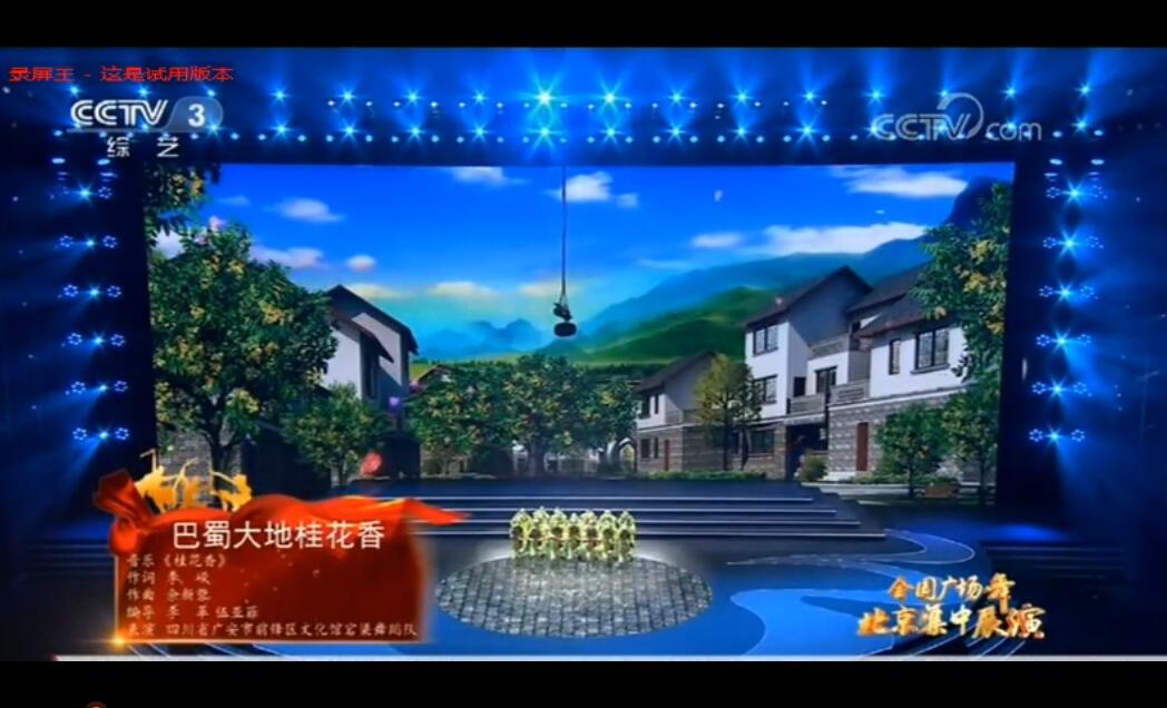 11月15日晚7点半,我市前锋区文化馆宕渠舞蹈队作为四川唯一一支广场舞代表队,在中央电视台3套《全国广场舞北京展演活动-1》栏目中,向全国观众表演了他们精心编排的第一支舞蹈《巴蜀大地桂花香》。