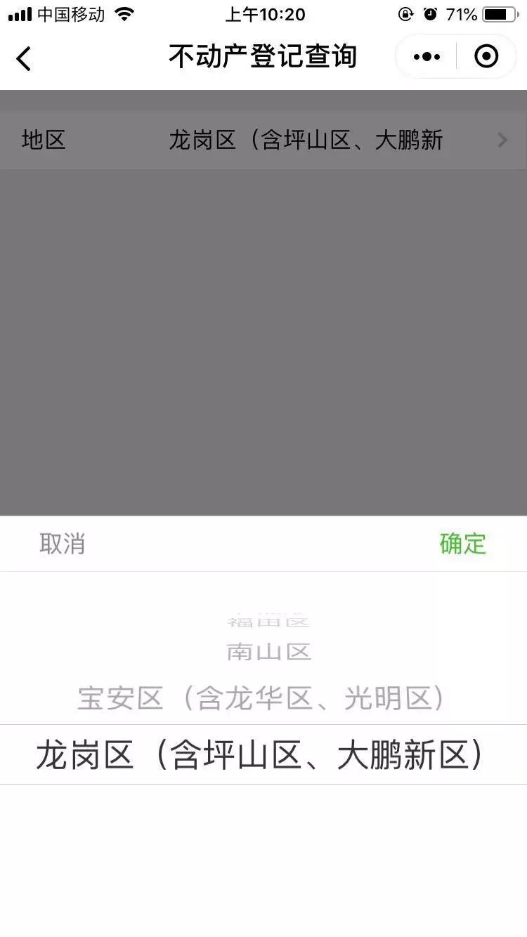 4、选择不动产所在区(注:“宝安区”为“宝安区(含龙华区、光明区)”;“龙岗区”为“龙岗区(含坪山区、大鹏新区)”)
