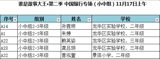 “谁是故事大王·第二季”中国银行专场晋级复赛名单出炉