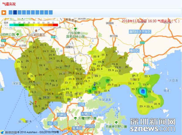 市气象局发布气温实况(数据更新于11月20日16时30分)