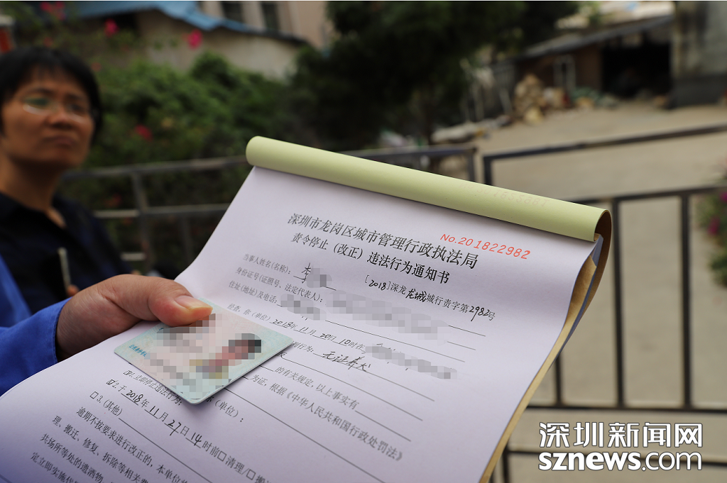 李先生被开出责令停止(改正)违法行为通知书
