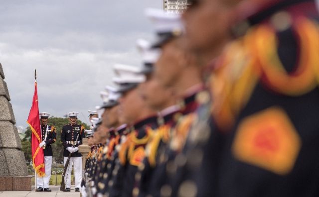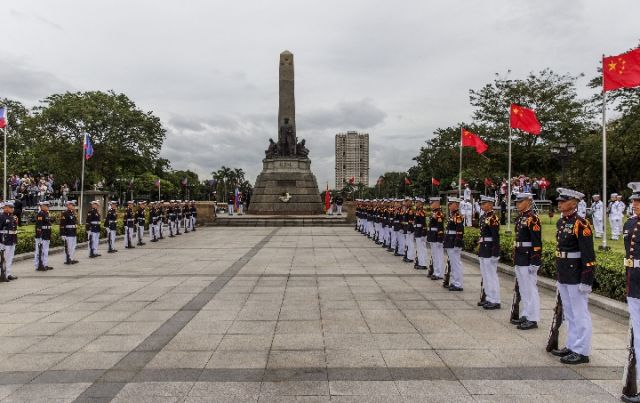 杜特尔特为习主席在总统府前草坪举行了隆重欢迎仪式。习近平在杜特尔特陪同下检阅仪仗队。