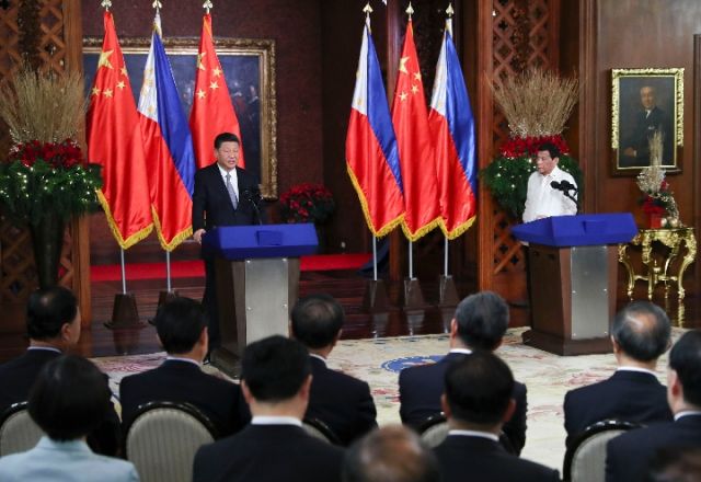 11月20日,国家主席习近平在马尼拉同菲律宾总统杜特尔特举行会谈。这是会谈后,两国元首共同会见记者。(新华社记者谢环驰摄)