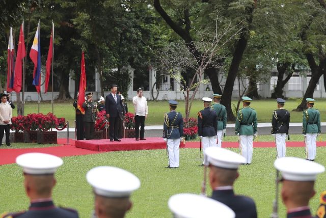 11月20日,国家主席习近平在马尼拉同菲律宾总统杜特尔特举行会谈。会谈开始前,习近平出席杜特尔特在总统府前草坪举行的隆重欢迎仪式。(新华社记者丁林摄)