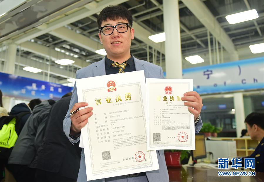 在沈阳片区政务服务中心,一位企业代表注册当天拿到了营业执照(2017年4月10日摄)。新华社记者 杨青摄