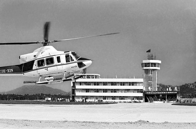 1983年11月12日,位于南头的直升飞机场投入使用,为南海油田服务的中国海洋直升飞机专业公司举行开业典礼和首航仪式。 刘廷芳 摄