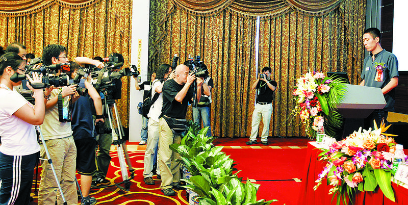 2007年10月12日,深圳华大基因研究院举行新闻发布会,宣布顺利完成首个“中国人基因组图谱”的绘制工作。 陈富 吴铠峰 摄