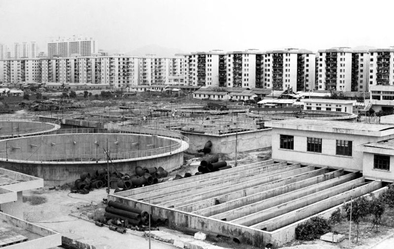 1984年,公司承建的第一个市政重点工程——滨河水质净化厂(一期)(1986年摄)。马树华摄