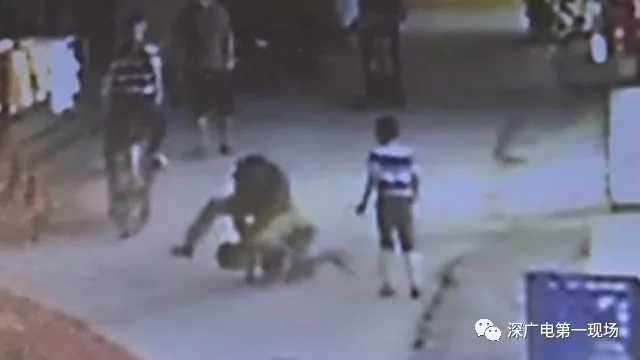 将小月按倒在地后,一名成年男子对着孩子的头部打了五拳,看到围观市民越来越多,男子带着身边的男孩离开。