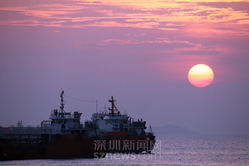 外伶仃海域,夕阳下色彩层次丰富(摄于2018年11月21日傍晚)