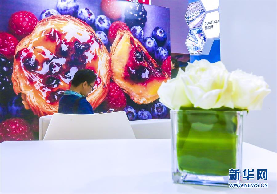 2018年11月6日,在中国上海,一位男士坐在中国国际进口博览会的葡萄牙展区内。新华社记者殷刚摄