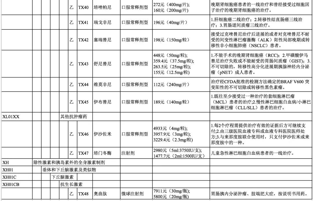 17种抗癌药完整名单