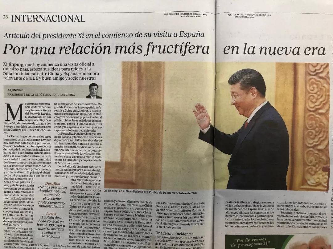△27日发行的西班牙《阿贝赛报》(ABC)发表习近平题为《阔步迈进新时代,携手共创新辉煌》的署名文章。(央视记者杨洪拍摄)