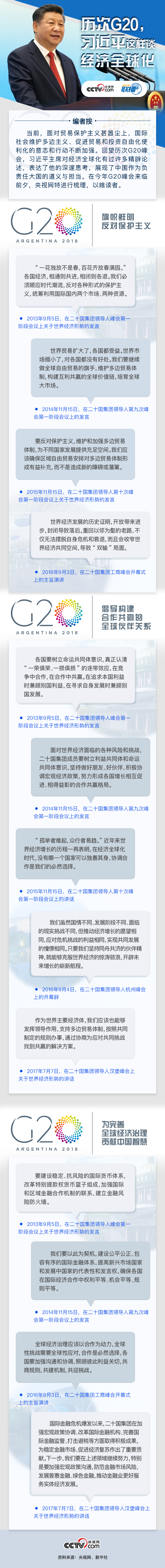 党的十八大以来,习近平主席在G20峰会上不断为世界经济贡献中国智慧、中国方案。回顾五年来习近平在G20峰会上的发言,从中能读出中国维护多边贸易体制,支持经济全球化,谋求合作共赢的决心和信心,读懂习近平胸怀世界、心系天下的中国情怀。
