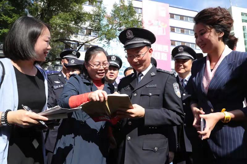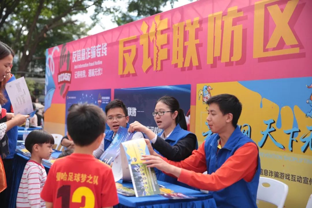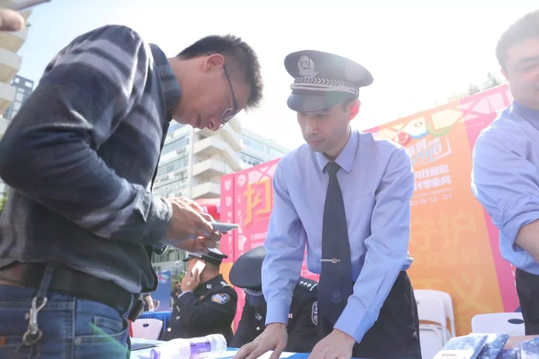 福田公安分局反诈骗宣传团队开展反诈骗宣传、互动游戏,通过异形展板、反诈骗海报等,向市民防范宣讲常见诈骗手段,群众纷纷拿起手机“移形换影”自拍,扫一扫“福田警察”二维码,加入到反诈骗行动队伍,为“反诈骗”代言,提高防骗技能。同时,分局法制、经侦、禁毒、出入境、户政等部门现场摆台,民警一一解答群众提出的各类咨询问题。