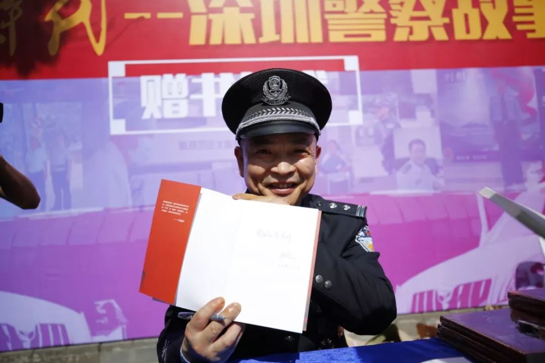 当天上午,人民公安出版社副总编李国强、著名作家李迪与市公安局领导来到福田分局开放点现场为深圳公安“每日警星”代表签名赠书。在赠书点,许多市民排起了长队,领取《英雄时代——深圳警察故事》。