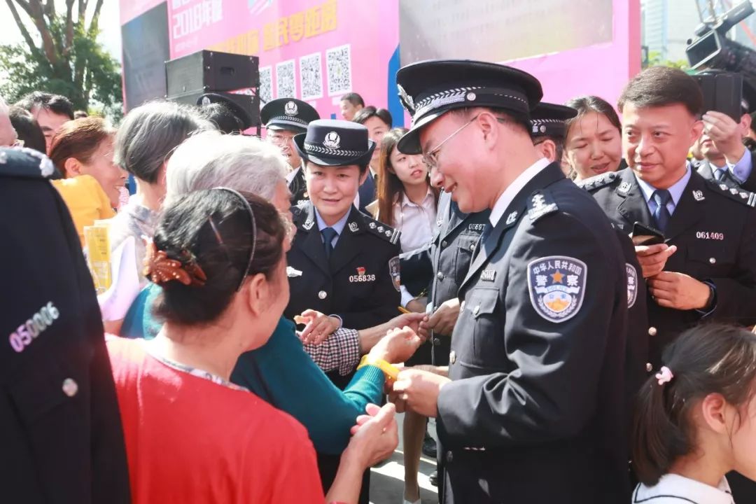 仪式后,深圳市副市长、公安局长徐文海现场为来参观活动的老人和小孩佩戴了“黄手环”,阳光的颜色,给人温暖,让人安心,传递了正能量。