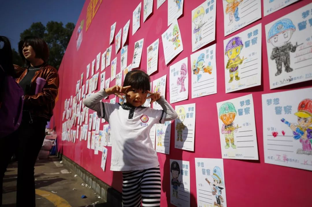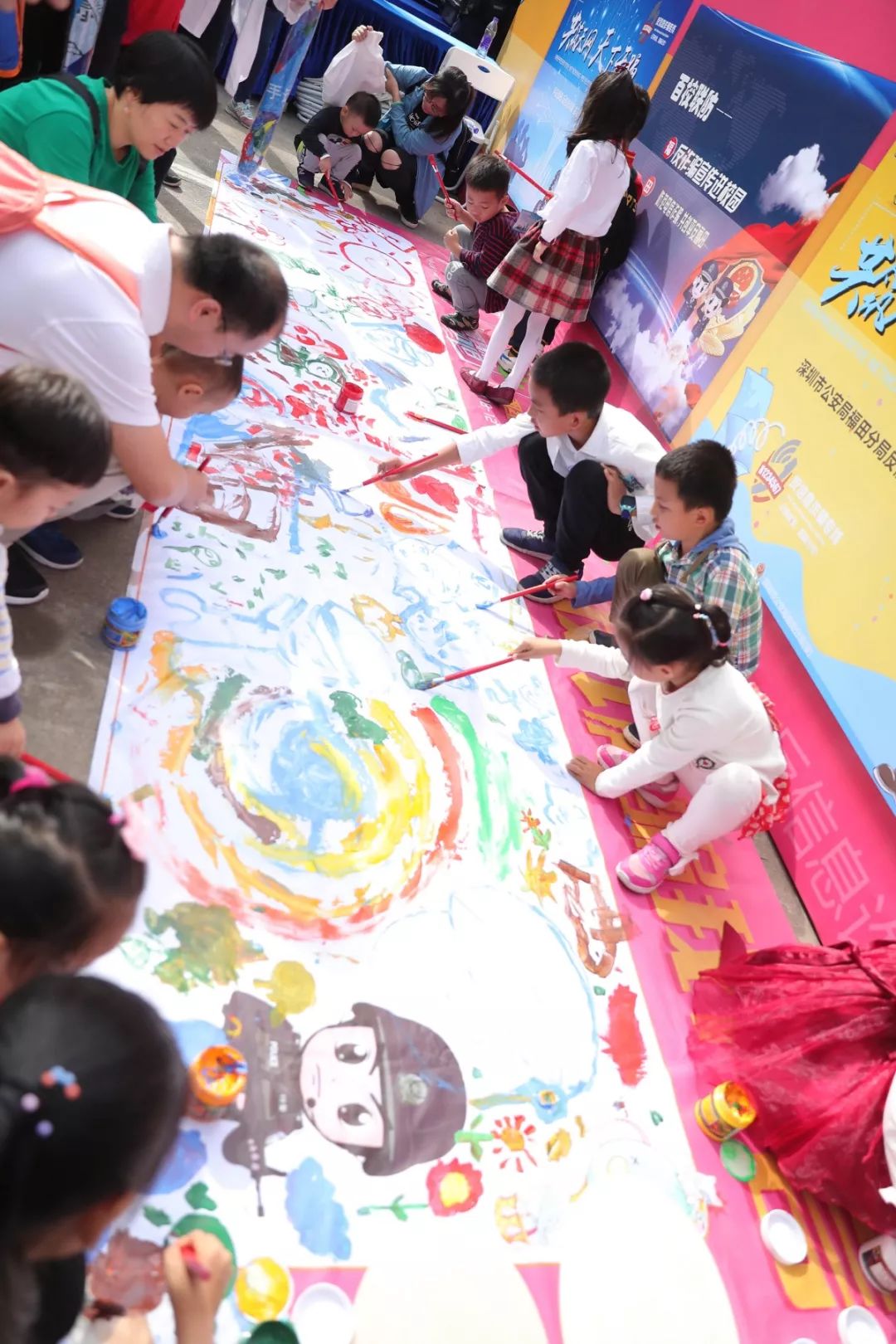 最具童年味道和勃勃生机,大人和小孩现场涂鸦,写出对警察想说的话,也可以在画架画板上画出自己心目中的警察,在孩子心中种下警察的种子,满满的寄语,是对福田警察的祝福和期待,这也是警察蜀黍肩膀上沉甸甸的责任和勇往直前的力量!