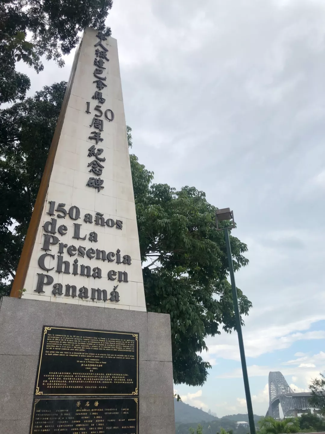 “你好,可以给我拍张照片吗?”在巴拿马运河畔的“华人抵达巴拿马150周年纪念碑”旁,我们偶遇一位运河华人后代。