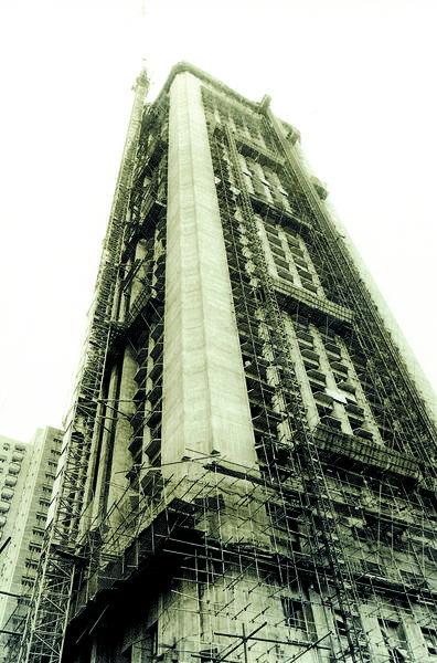 当年施工中的国贸大厦。