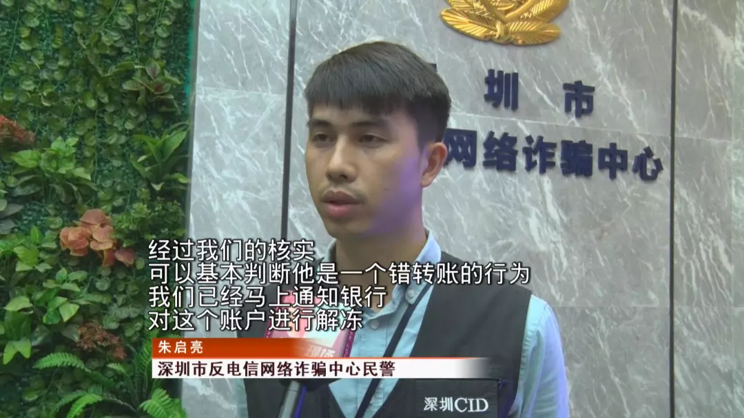巧的是,最后罗先生发现本应该转给妻子账上的钱,到了别人手上,于是他马上向深圳市反电信网络诈骗中心报案。据深圳市反电信网络诈骗中心的民警介绍,此前这位罗姓事主,报案时反映自己遭遇诈骗,警方这才对涉事的刘先生账户进行了冻结。