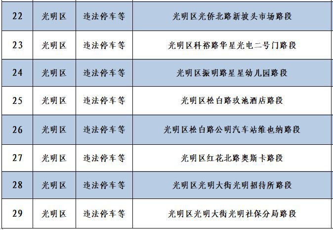 46套专门查处违法停车等违法行为的违停球监控设备上线,主要分布在:宝安、光明区人、车流量密集区域。宝安区12套主要分布在107国道辅道沿线路段。光明区34套主要分布在光明广场、红花北路、圳园路、光明大街等路段。