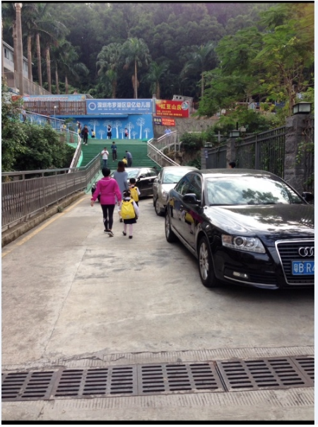 据该网友反映,通往景亿幼儿园大门的道路只有上述提及的那两条车道,一条被用来停车,而另一条则满是排队从景亿山庄车库转弯出来的机动车。“都没有路可以走了”该网友在帖文中表示,小孩和来接送的家长只能从机动车之间穿过,太不安全了。随后,该网友还质疑:事关3-5岁幼儿生命安全,为什么没人管?