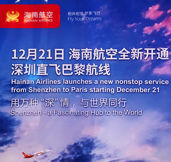 今天(12月21日)凌晨,深圳正式开通巴黎航线。