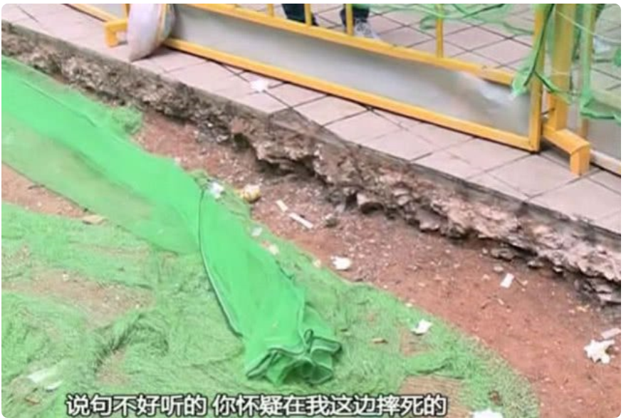 监控视频可见,当时地面开挖的位置确实没有完全围蔽起来,护栏前亦未见警示语。