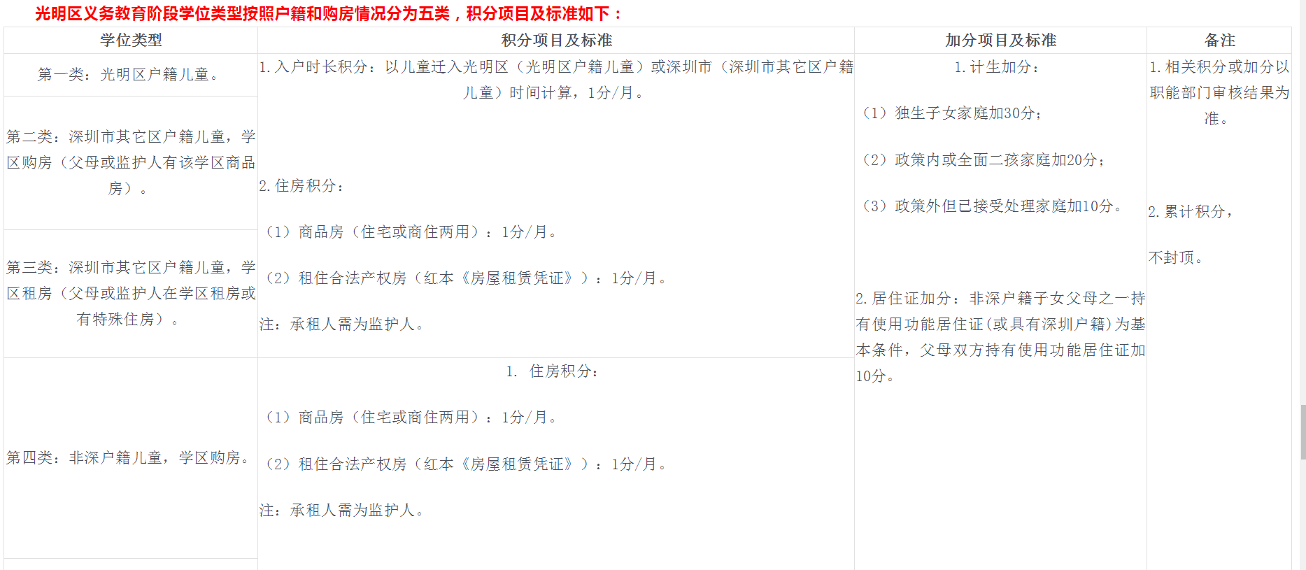 光明区公布2019年公办小学、初中招生片区和学位积分方案啦